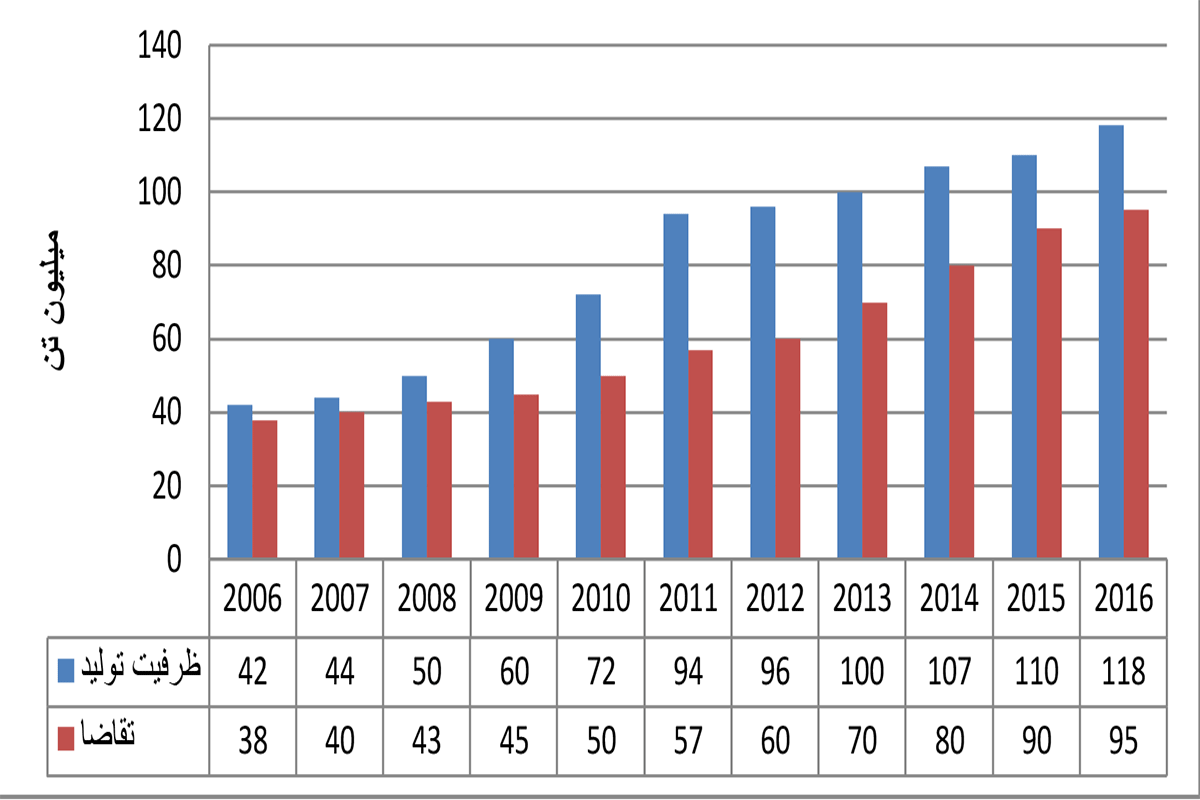 نمودار1- بازار متانول دنیا (میلیون تن؛2016-2006)