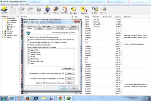 3- پنجره تنظیمات IDM باز میشود. شبیه به تصویر زیر در پنجره باز شده در بخش General و در قسمت Capture downloads from the following browsers نام مرورگرهای موجود برروی سیستم شما نشان داده میشوند.
