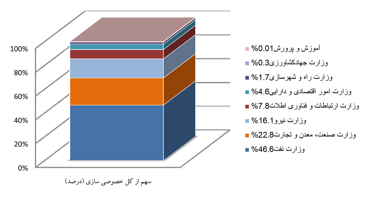 بر اساس اعلام رییس ستاد اصل ۴۴ قانون اساسی در شرکت ملی نفت ایران و طبق قانون برنامه چهارم توسعه، تا پایان سال ۱۳۸۸ باید تمام شرکتهای خدماتی و تا پایان سال ۱۳۹۳ عمده ی شرکتهای غیر مادر تخصصی صنعت نفت، به بخش خصوصی واگذار میگردید. اگرچه بنابر نبود نقشهی راه و درایت کافی، این روند با اختلال چشمگیری روبرو گردیده، لیکن همچنان بیشترین سهم از شرکتهای واگذار شده، در اختیار صنعت نفت، پالایش و پتروشیمی میباشند. چنانچه طبق آمار از 1.493.542 میلیارد ریال سهامی که طی سالهای 84 تا نیمه اول مهرماه سال 92 به بخشهای مختلف واگذار شده، وزارت نفت با سهم 46.6 درصدی، بالاترین میزان واگذاری را در میان 8 وزارتخانه به خود اختصاص داده است.