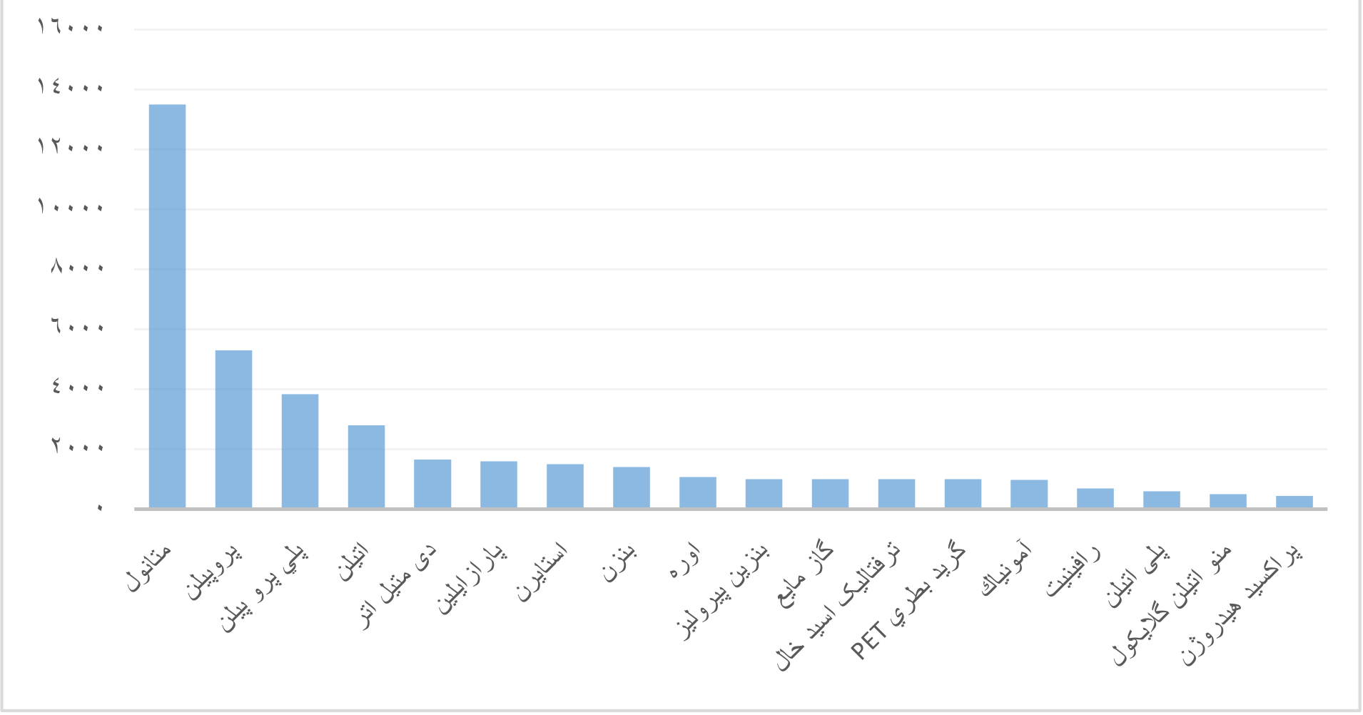 | 1 | الفین/ آروماتیک | پارسیان | پارا زایلین | 796 | نفتا | 2,000 | 1,843 | 24,914 |