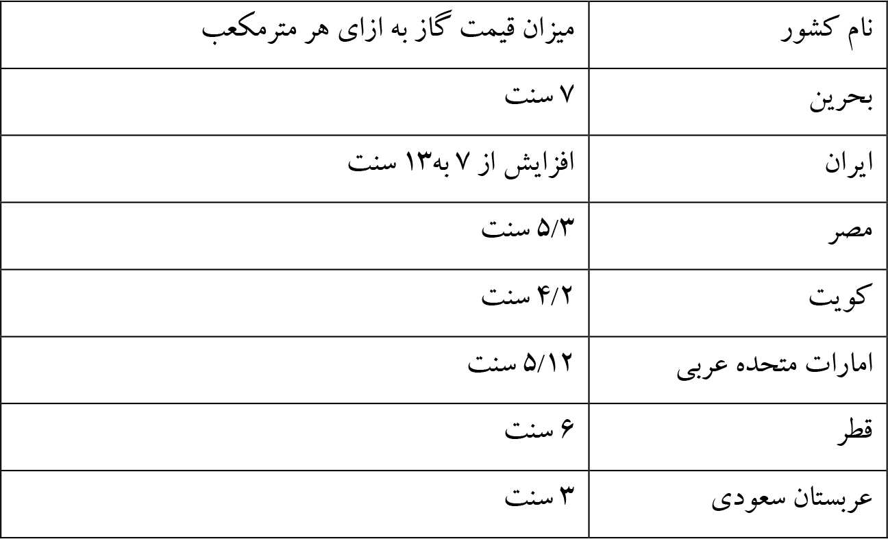 جدول 3- متوسط قیمت خوراک پتروشیمیها در کشورهای خاورمیانه