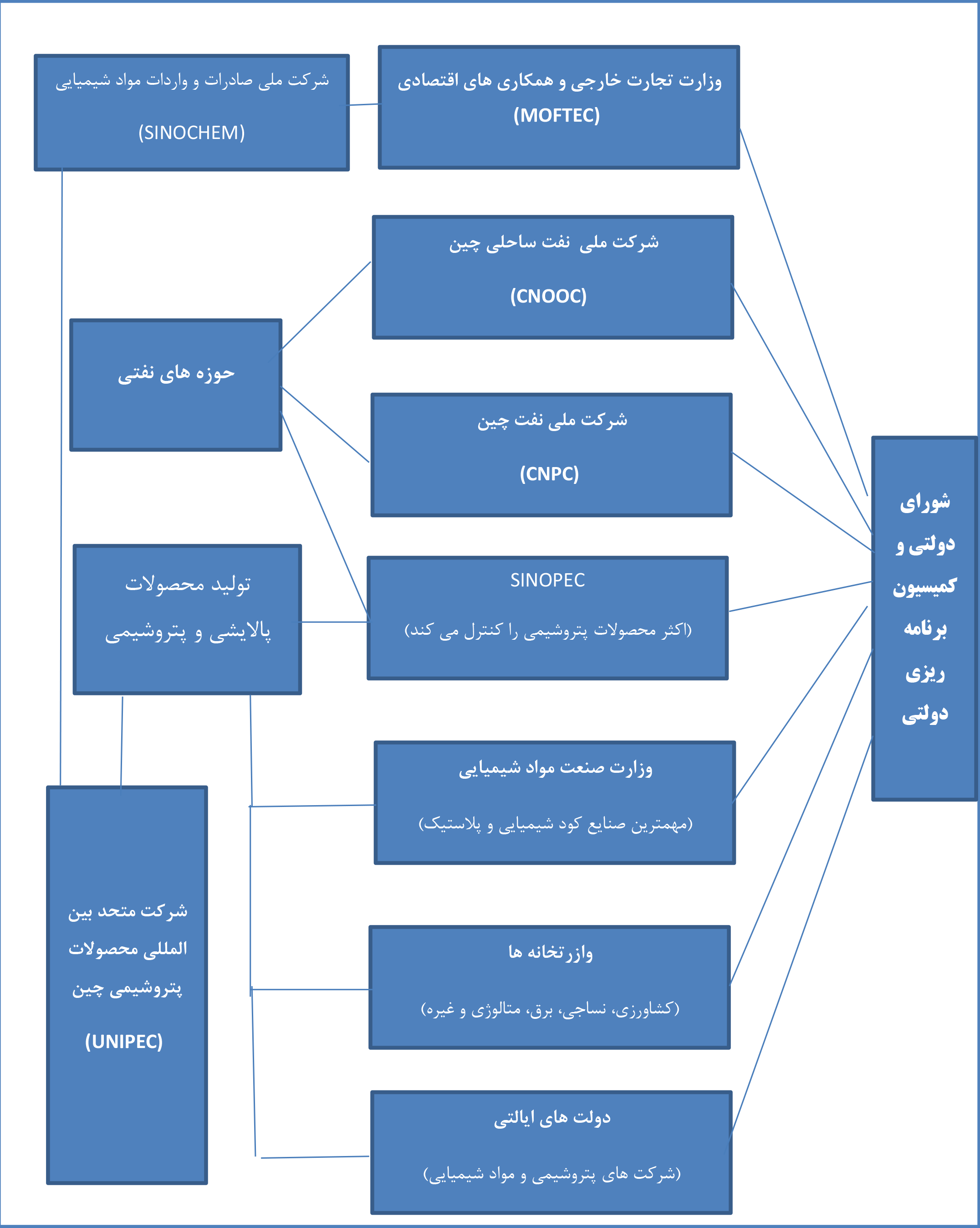 نمودار 2- ساختار اجرایی تولید و برنامه ریزی محصولات پتروشیمی در چین