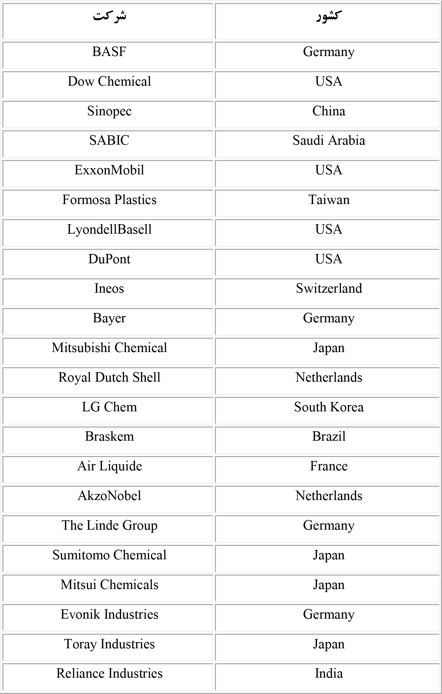 شرکت های اصلی تولید کنند مواد شیمیایی و پتروشیمیایی