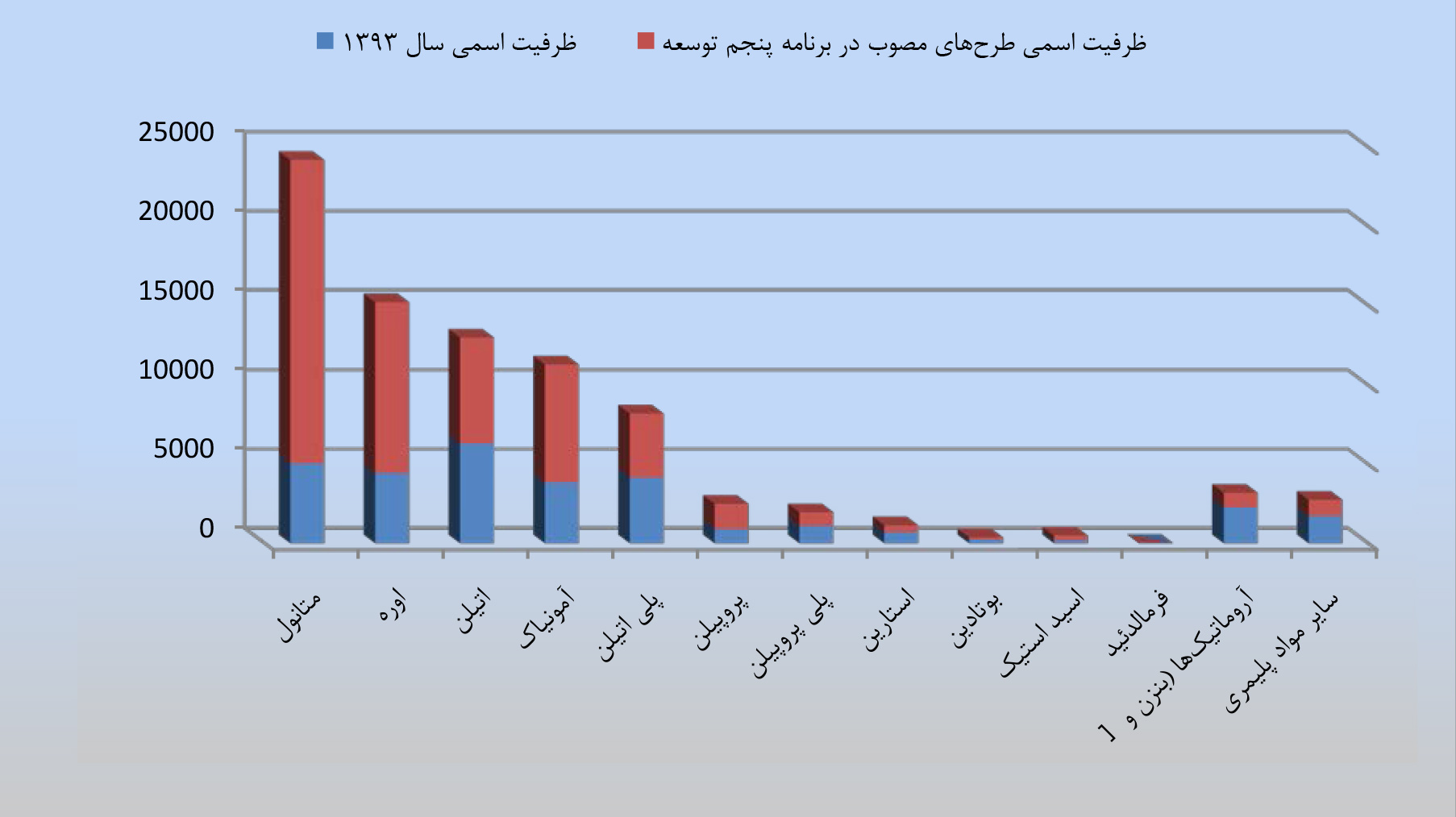نمودار2- ظرفیت تولید محصولات مختلف پتروشیمی در زمان کنونی و بعد از بهرهبرداری از طرحهای مصوب در برنامه پنجم توسعه