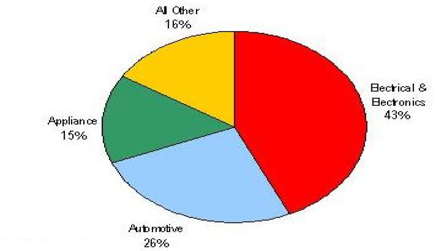 در صنعت ماشین، وسایل الکتریکی و الکترونیکی و وسایل ارتباطی است. با توجه به خواص الکتریکی بسیار مناسب PBT، بیش از نیمی از تقاضا برای این ماده را صنایع الکتریکی و الکترونیک به خود اختصاص دادهاند. همچنین PBT در ساخت وسایل خانگی و پزشکی نیز کاربرد دارد. در شکل زیر مصرف PBT به تفکیک بازار ارایه شده است.