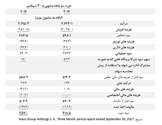 جدول 1- صورت سود و زیان گروه هلدینگ اینئوس اس. ای. برای فصل سوم سال 2017