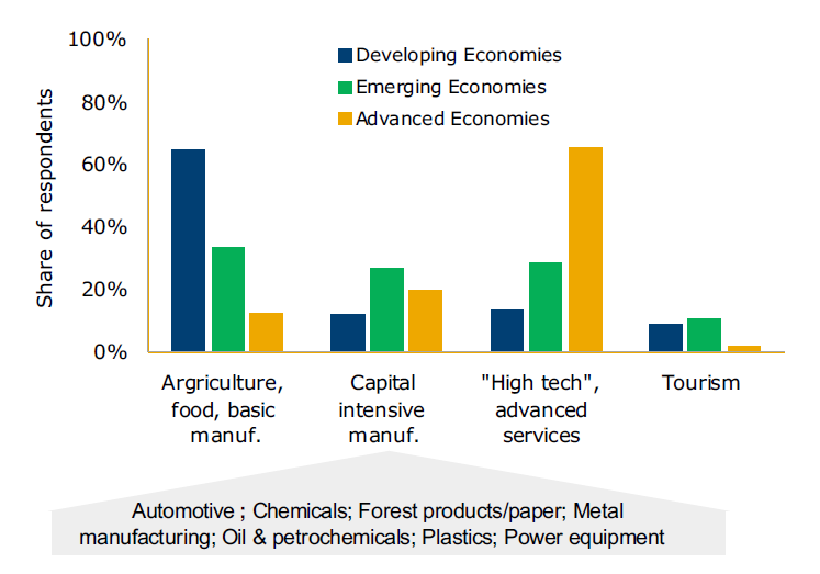 قسمت های مختلف صنعت پتروشیمی در طبقه بندی های مختلفی قرار می گیرند، یعنی فیبرهای شیمیایی به روی هرگونه رقابتی باز هستند و به طور فزاینده در مناطق ساحلی متمرکز شده اند، در حالی که محصولات داروئی تحت حمایت قرار دارند و به لحاظ جغرافیایی نیز پراکنده هستند.