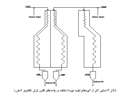 · اولین کویل دما بالا[4] برای گرمایش مخلوط هیدروکربن و بخار آب رقیقکننده
