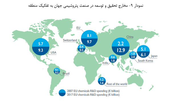 مخارج مربوط به تحقیق و توسعه در صنعت پتروشیمی جهان به تفکیک منطقه