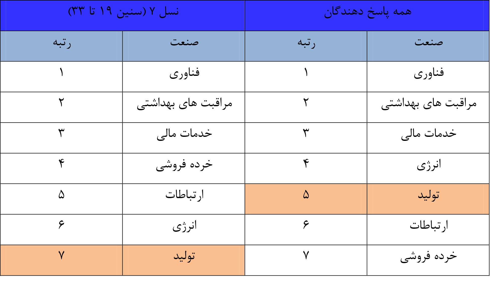 جدول 1- رتبه ترجیحات صنعتی پاسخ دهندگان اگر آنها قرار بود امروز کار خود را آغاز کنند