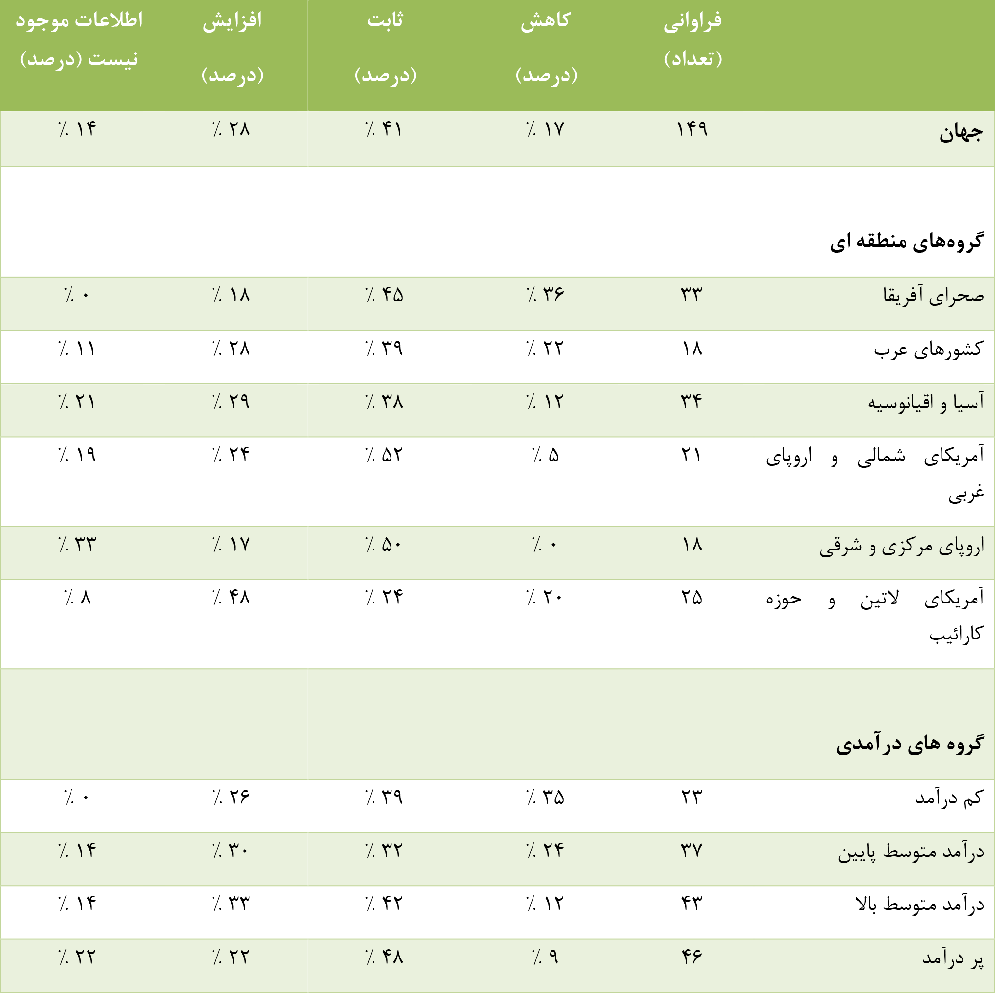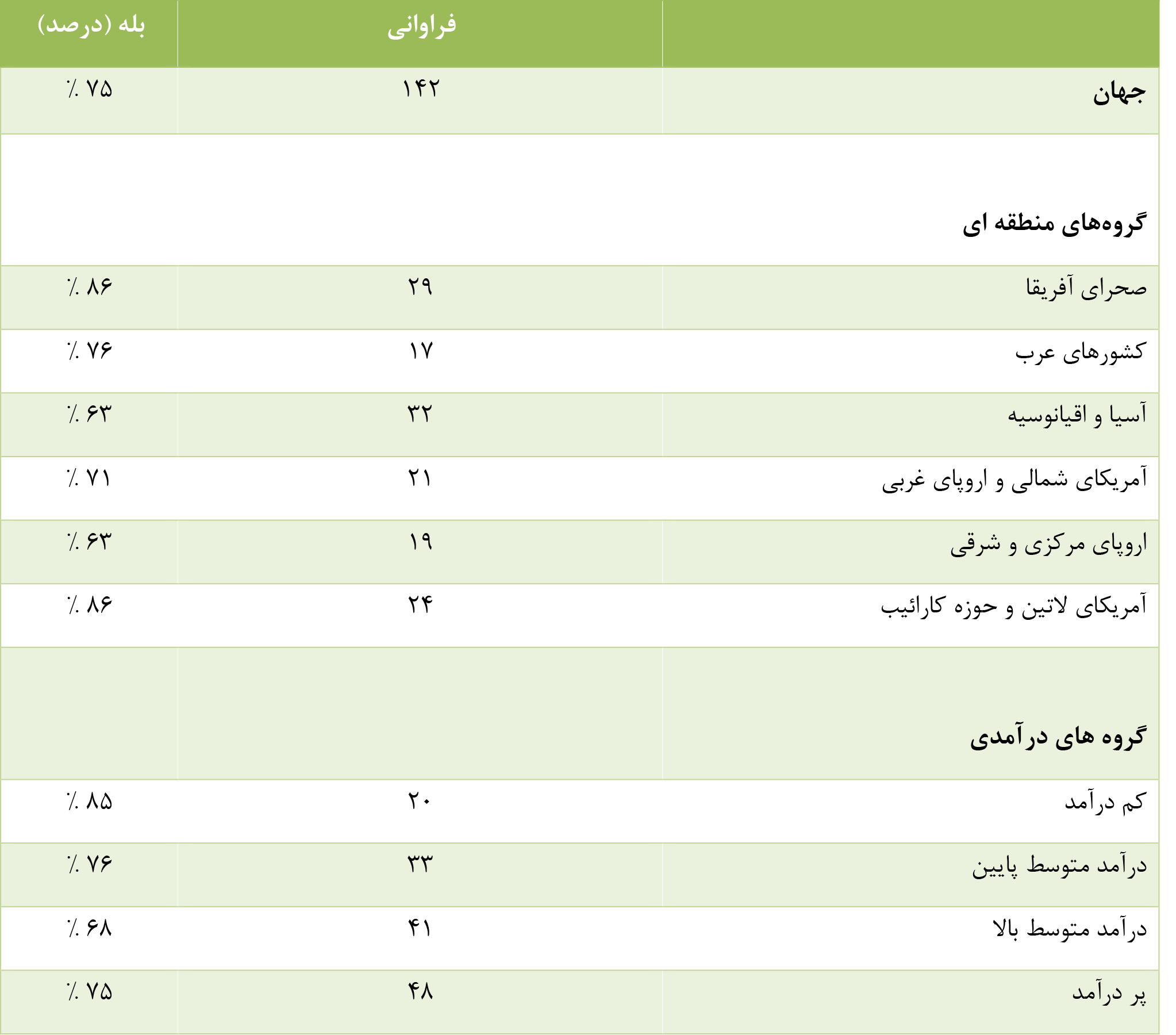 منبع: GRALE 4 Monitoring Survey/ نکته: 42 کشور (21 درصد) این اطلاعات را ارائه نکردند.