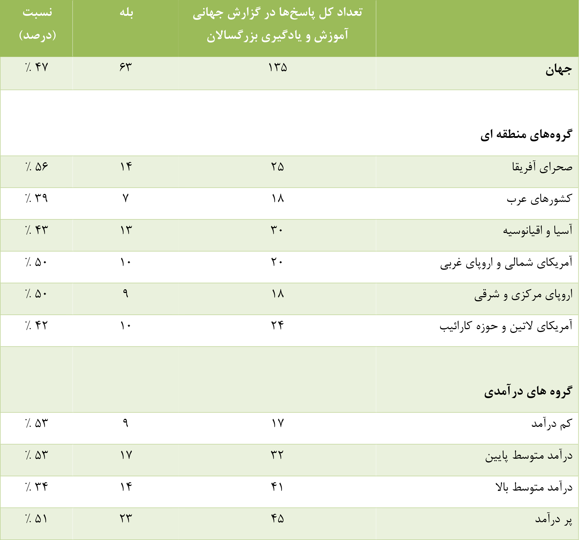 کیفیت برنامه های آموزش و یادگیری بزرگسالان در کشورهای مختلف