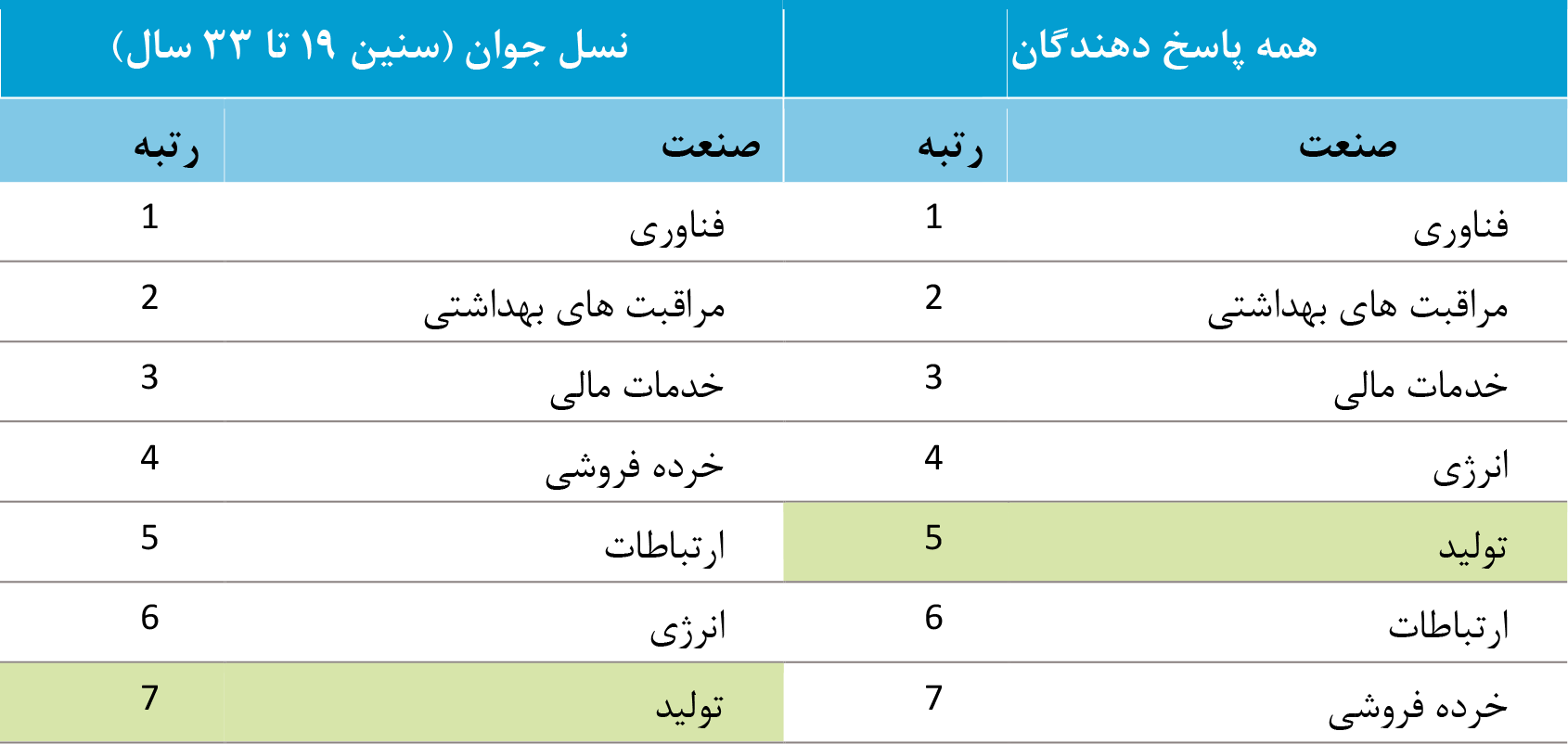 جدول 1- اولویت های پاسخ دهندگان برای انتخاب شغل در صنایع مختلف اگر قرار بود امروز شغل شان را انتخاب کنند