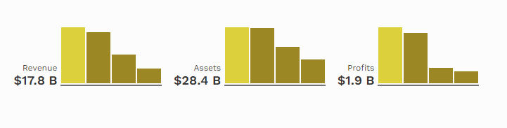 همانطور که در نمودار 1 مشاهده می شود این شرکت در سال 2021 از نظر شاخص های مالی در وضعیت بسیار مناسبی قرار داشته است، به طوری که در این سال میزان درآمد این شرکت در حدود 8/17 میلیارد دلار آمریکا، میزان دارایی های این شرکت بالغ بر 4/28 میلیارد دلار آمریکا و میزان سود این شرکت 9/1 میلیارد دلار آمریکا بوده است.