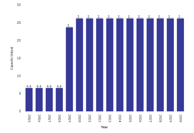 نمودار 2- ظرفیت تولید شرکت پتروشیمی هنگلی دالیان، 2030-2015