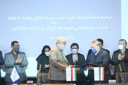در ابتدای این مراسم مدیر عامل شرکت چگالش با اشاره به امضای اولین قرارداد فی مابین شرکت پتروشیمی شهید تندگویان و چگالش در سال ۱۳۷۷ گفت: پروژه 1 PET با تکنولوژی زیمر آلمان در این پتروشیمی ساخته شد و سپس پروژهPTA2 با مشارکت شرکت MHI (Mitsubishi Heavy Industry) به شرکت چگالش واگذار شد.