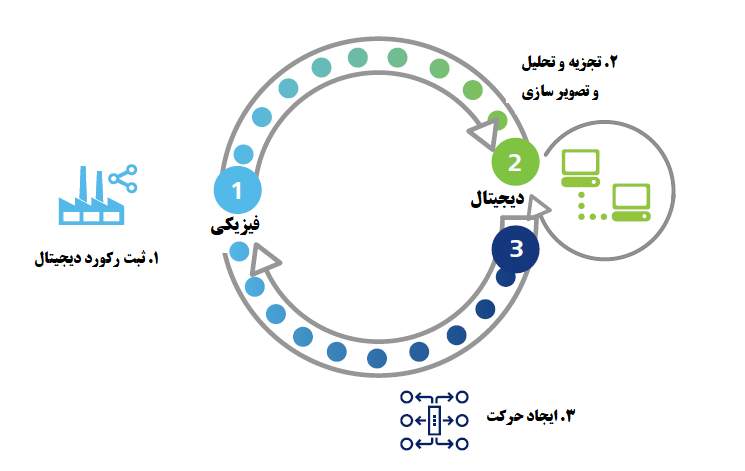 صنعت ۴.0 این فناوری های ارتباطی را به کار می گیرد و آنها را توسعه می دهد تا بدین وسیله چرخه فیزیکی- دیجیتال- فیزیکی را کامل کند ( نمودار ۱). جهش های فیزیکی به دیجیتال و دیجیتال به فیزیکی در فرایند های تولیدی منحصر به فرد هستند؛ اینها در واقع جهش از دیجیتالی به سمت فیزیکی است - از فناوری های ارتباطی دیجیتال به ایجاد اشیا فیزیکی یا یک فرایند بهبود یافته- که در واقع ماهیت صنعت ۴.۰ را تشکیل می دهد.