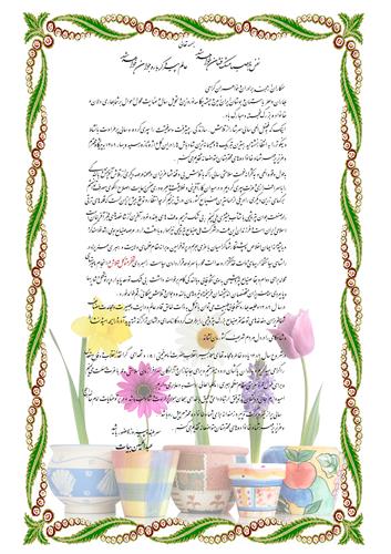 اینک که به فضل الهی سالی سرشار از تلاش، سازندگی، پیشرفت و موفقیت را سپری کرده و سالی پرطراوت، با نشاط و نیکوتر را به انتظار نشستهاید، بهترین تبریکها و صمیمانهترین شادباشها را در این گلواژه تازه رسیده، بهار 1389، به پیشگاه محترم و عزیز پرمهر شما و خانوادههای محترم متواضعانه تقدیم میکنم.