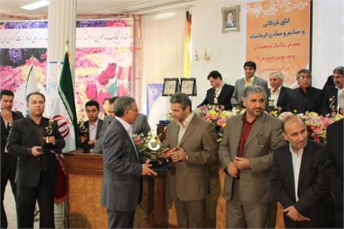 در این مراسم که استاندار و جمعی از مدیران استانی کرمانشاه حضور داشتند مهندس میر احمدی، مدیر عامل شرکت صنایع پتروشیمی کرمانشاه لوح تقدیر و تندیس صادر کننده نمونه استان کرمانشاه را دریافت کرد.