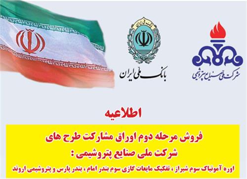 مرحله دوم عرضه اوراق مشارکت طرح های پتروشیمی به منظور جلب مشارکتهای مردمی برای سرمایهگذاری سودآور و مطمئن از روز گذشته (شنبه 25 دی) به مدت پنج روز کاری در شعب منتخب بانک ملی آغاز شده است.